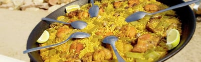 Eine interessante Tatsache: In der Comunidad Valencia wird Paella traditionell am Sonntagnachmittag gegessen, oft mit Familie oder Freunden. Die Pfanne wird auf den Tisch gestellt und man isst direkt daraus. Jeder bekommt dann sein eigenes „Stück” aus der Pfanne zugeteilt – und es ist „not done”, mit dem Löffel einfach überall in der Pfanne herumzuwühlen. Erst wenn alle satt sind, darf man weiteressen, was übrig ist. Natürlich darf man sich auch einfach seinen eigenen Teller vollschöpfen...